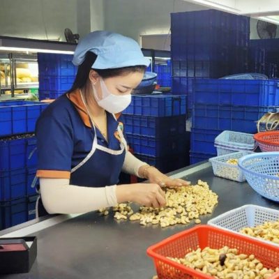 Nhà máy được đầu tư hệ thống máy móc hiện đại, quy trình sản xuất khép kín và kiểm soát nghiêm ngặt từ nguyên liệu đến thành phẩm, đảm bảo an toàn thực phẩm và giữ được hương vị tự nhiên của hạt điều.